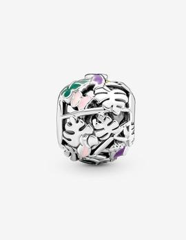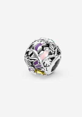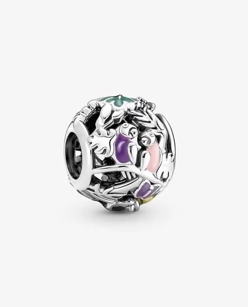 ¡Bienvenido a la jungla! Mira entre las grandes hojas tropicales y descubre pájaros y mariposas de colores. Este charm en filigrana en plata de primera ley presenta un intrincado diseño de hojas y animales de la jungla resaltadas con esmalte aplicado a mano. Llévalo en tu pulsera y sueña con un frondoso paraíso verde.