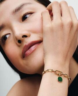 Tamaño mini, impacto máximo. Este charm con un recubrimiento en oro de 14k se inspira en la gema malaquita con su color verde intenso y efecto ondulado, que simboliza la transformación, el crecimiento y la positividad. El reverso es una superficie lisa para incluir tu grabado personal. Es el regalo personalizado perfecto para esas personas tan especiales, incluida tú misma. Compatible con: Pandora ME/Moments Colección: Pandora ME Piedra: Malaquita sintética Color. Verde Metal: Aleación única de metales con un recubrimiento de oro de 14k Dimensiones Profundidad: 2 mm Alto: 11,4 mm Ancho: 11,4 mm