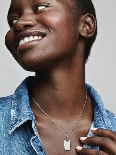 Celebra tu individualidad y permite que las joyas de firma sean la única expresión de tus valores y pasiones. Personaliza tu collar para reflejar verdaderamente tu estilo y graba el colgante para hacerlo realmente tuyo. El colgante de la etiqueta rectangular en plata de primera ley puede llevarse solo para lograr un look minimalista o en capas con otros collares en otros acabados, longitudes y estilos para crear un look personalizado. Personaliza tu estilo y muestra el mensaje que más te importa. Plata de primera ley Nuestro metal más icónico, caracterizado por su acabado fresco y brillante.