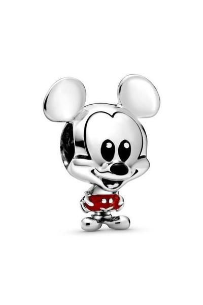 Charm Pandora Mickey Mouse con Pantalones Rojos en plata de primera ley adornado con esmalte negro y rojo.